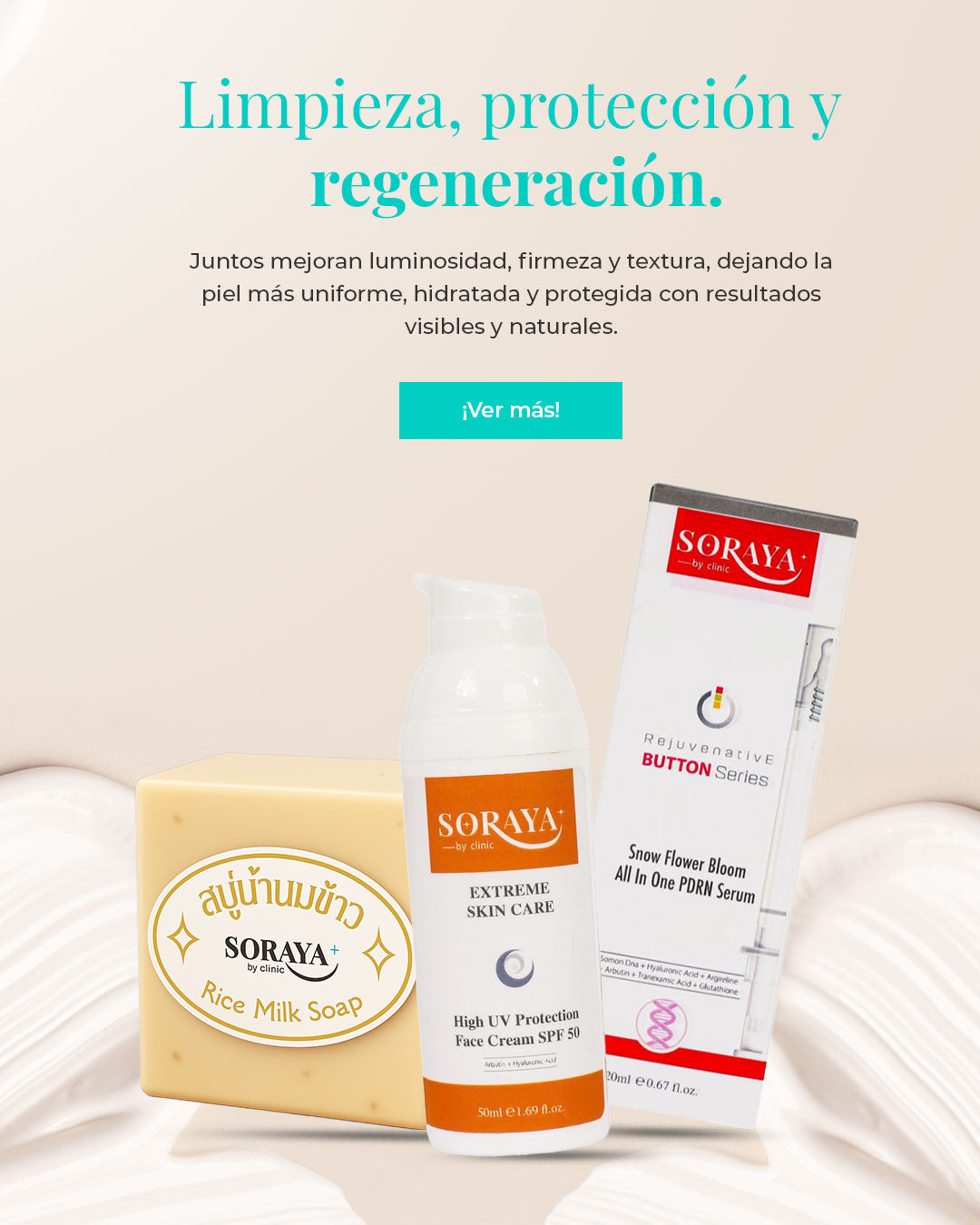 Pack Coreano: Jabón Facial de arroz + Bloqueador solar + Serum de Colágeno