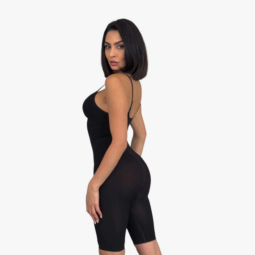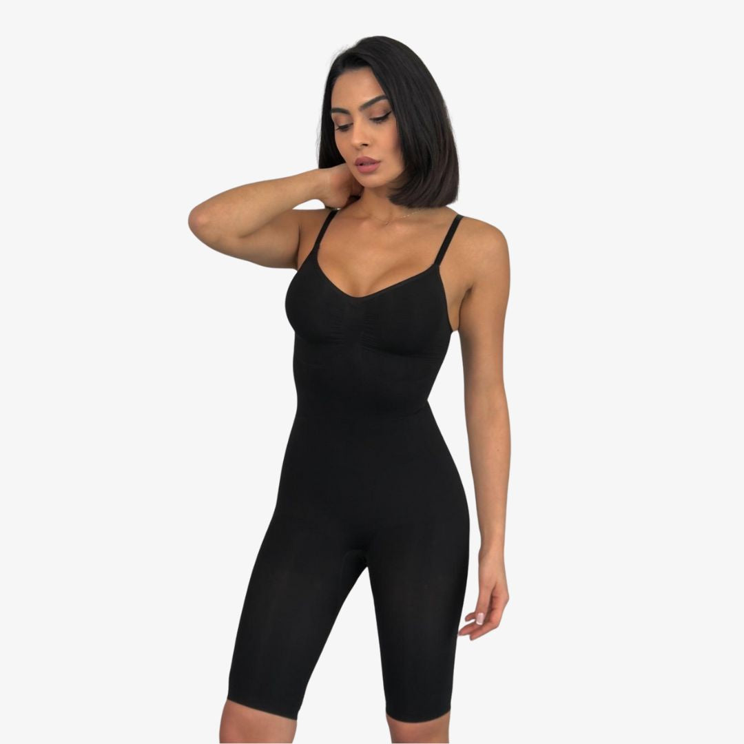 Con un diseño de tirantes finos ajustables y un escote suavemente fruncido, este body ofrece un soporte ligero en el busto mientras centra su poder de compresión en el torso y los muslos. Su tejido tecnológico de alta calidad se desliza sobre tu piel, permaneciendo invisible incluso bajo la ropa más ajustada.